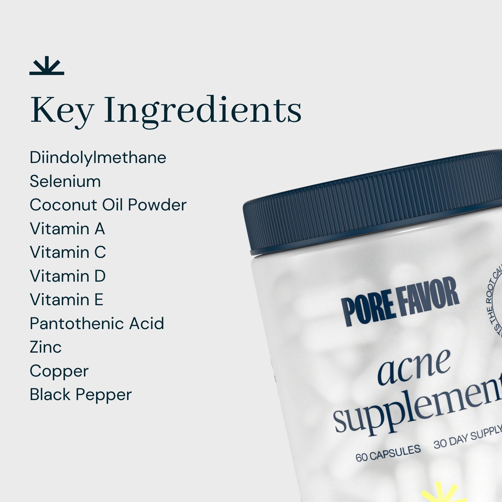 A backed-by-science, dermatologist-endorsed acne supplement to help treat the root cause of acne, oily skin, and blackheads. The root cause of acne is internal. Take a better, targeted approach to treating your acne with this highly effective supplement. Join 100,000+ former acne sufferers today.